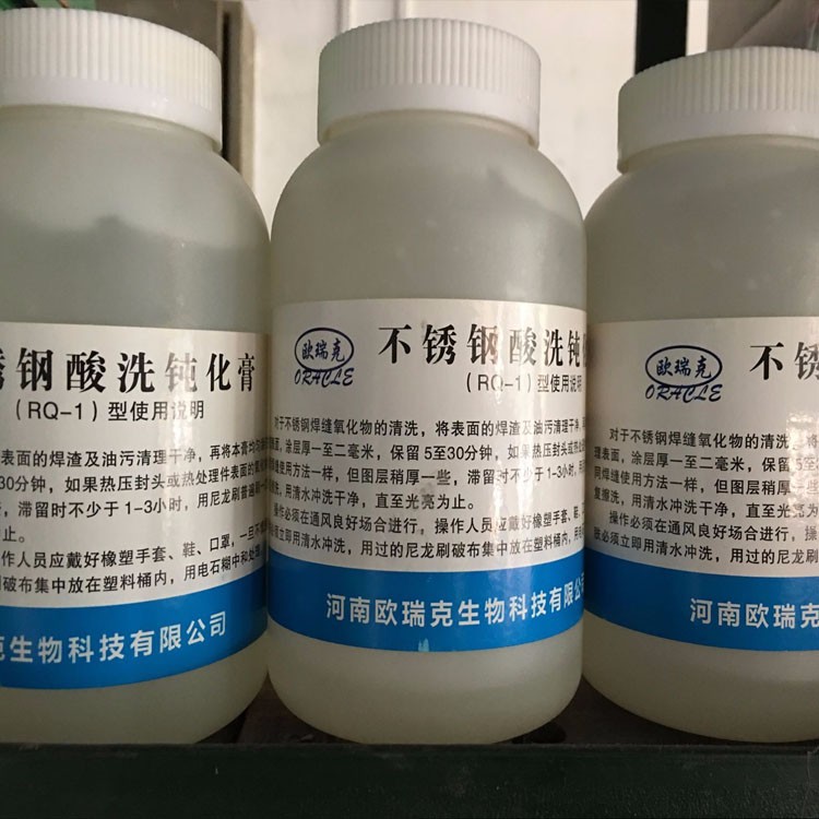 不銹鋼酸洗鈍化膏(液體:不銹鋼酸洗鈍化液)是清除不銹鋼焊接和高溫加工后產生的黃、藍、黑色焊斑和氧化皮的化學制劑,適用于鐵素體、奧氏體及其它不銹鋼,對不銹鋼全面酸洗鈍化,形成完整鈍化膜,能有效提高其抗腐蝕能力,使不銹鋼表面光亮如新,效果***,在酸洗鈍化的過程中能同時清除工件表面的油污、銹斑、焊斑、氧化層、游離鐵等污垢,處理后表面變成均勻銀白色。